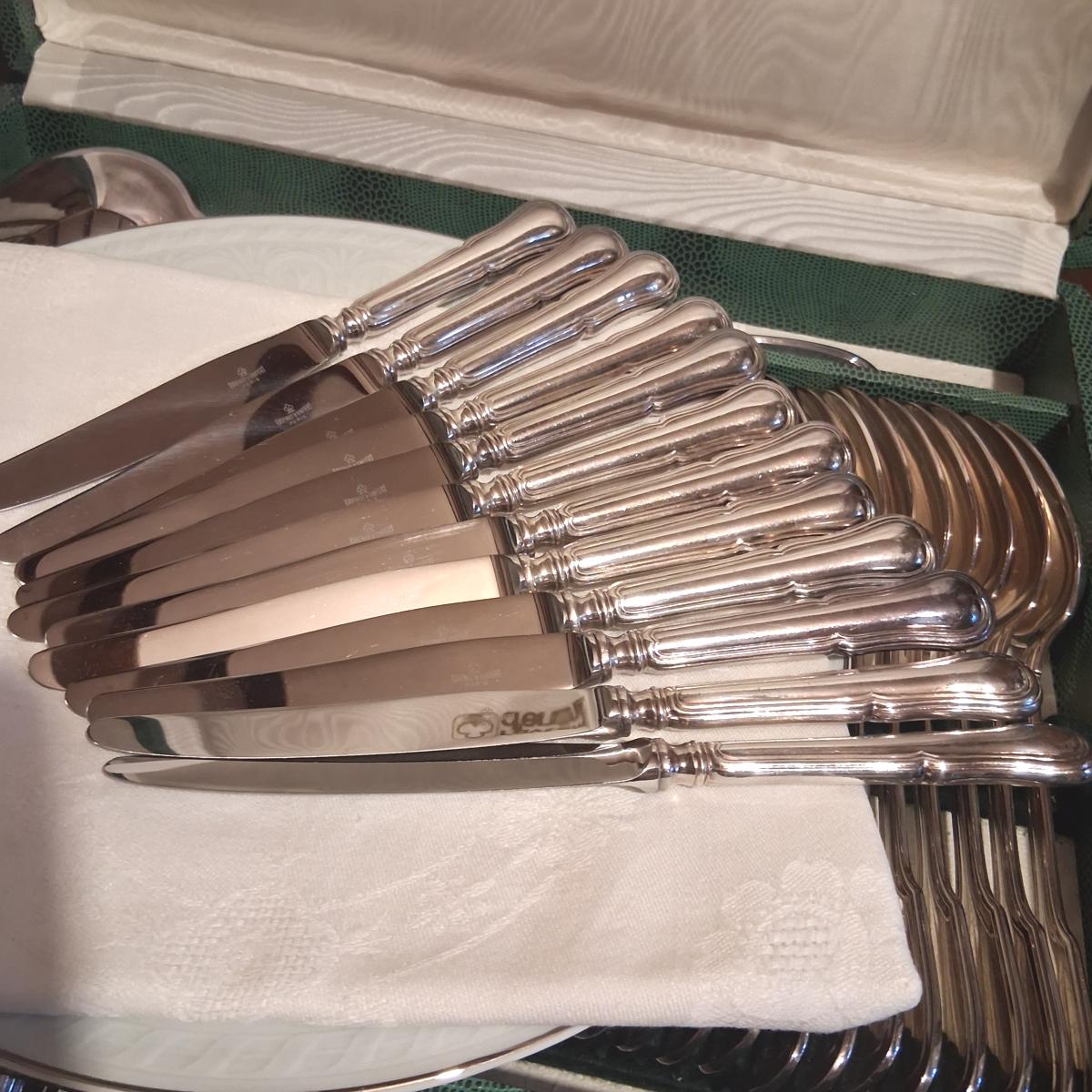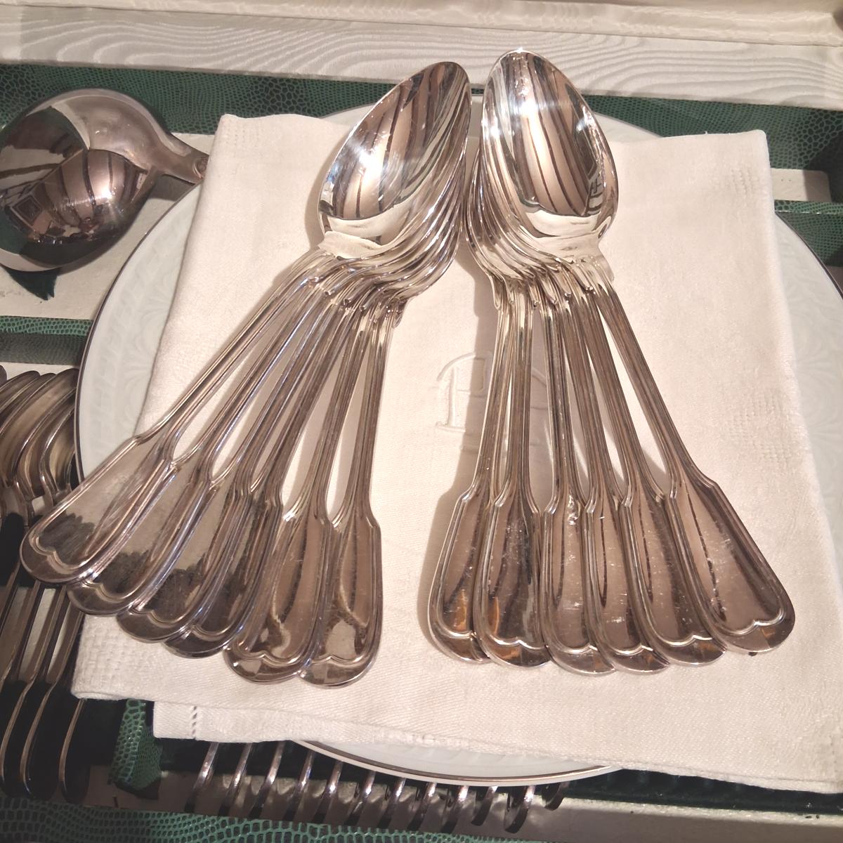 Indémodable modèle au filet pour cette ménagère de Ravinet Denfert, orfèvrerie fondée en 1845.