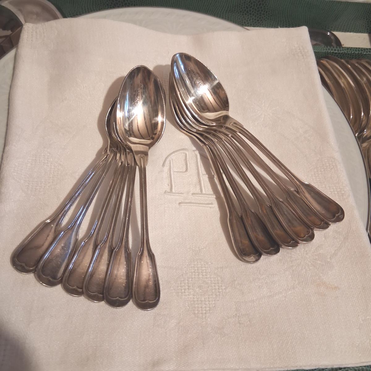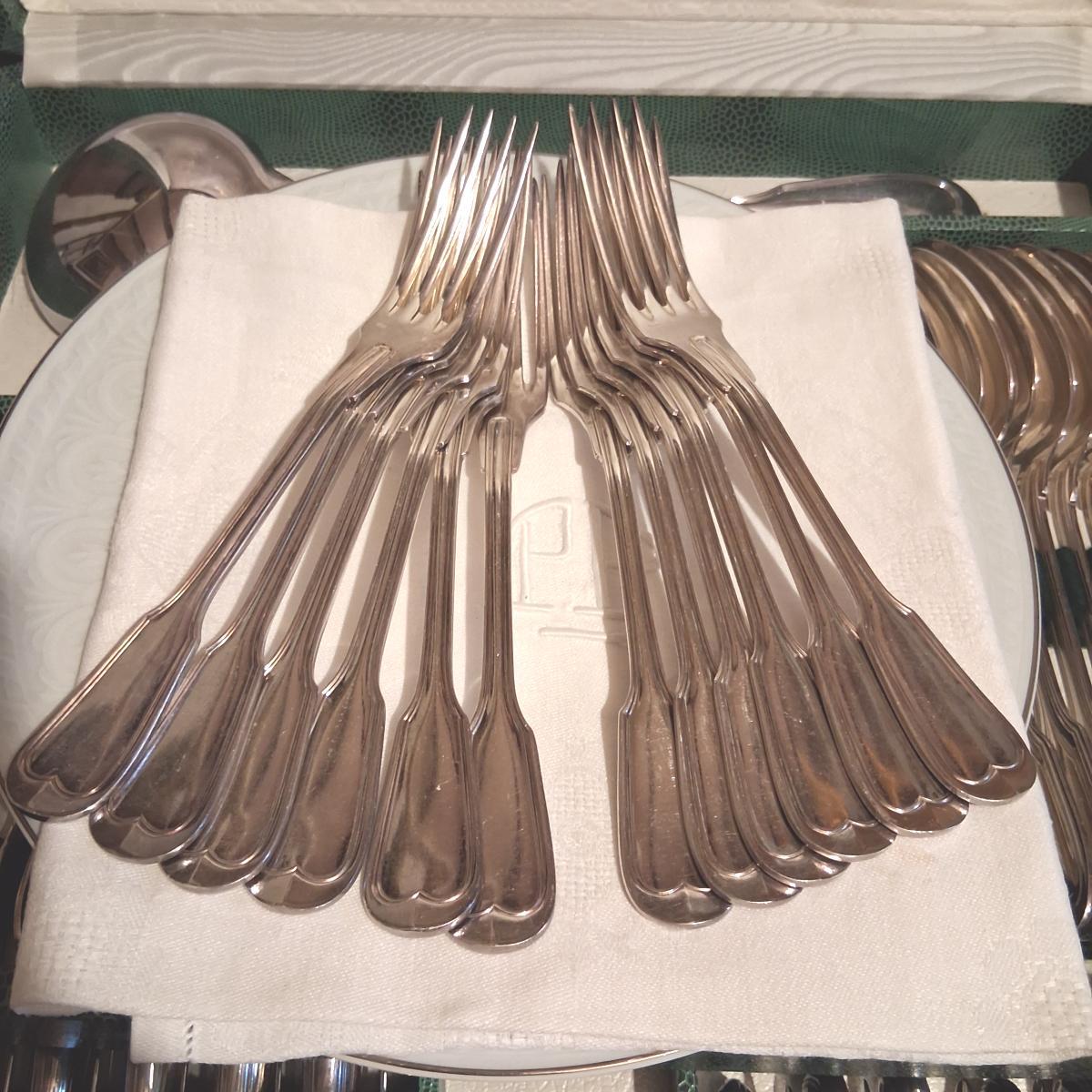 Les couverts n'ont quasi jamais servi et comportent donc très peu de trace d'usage inhérentes au métal argenté qui est de bonne qualité.