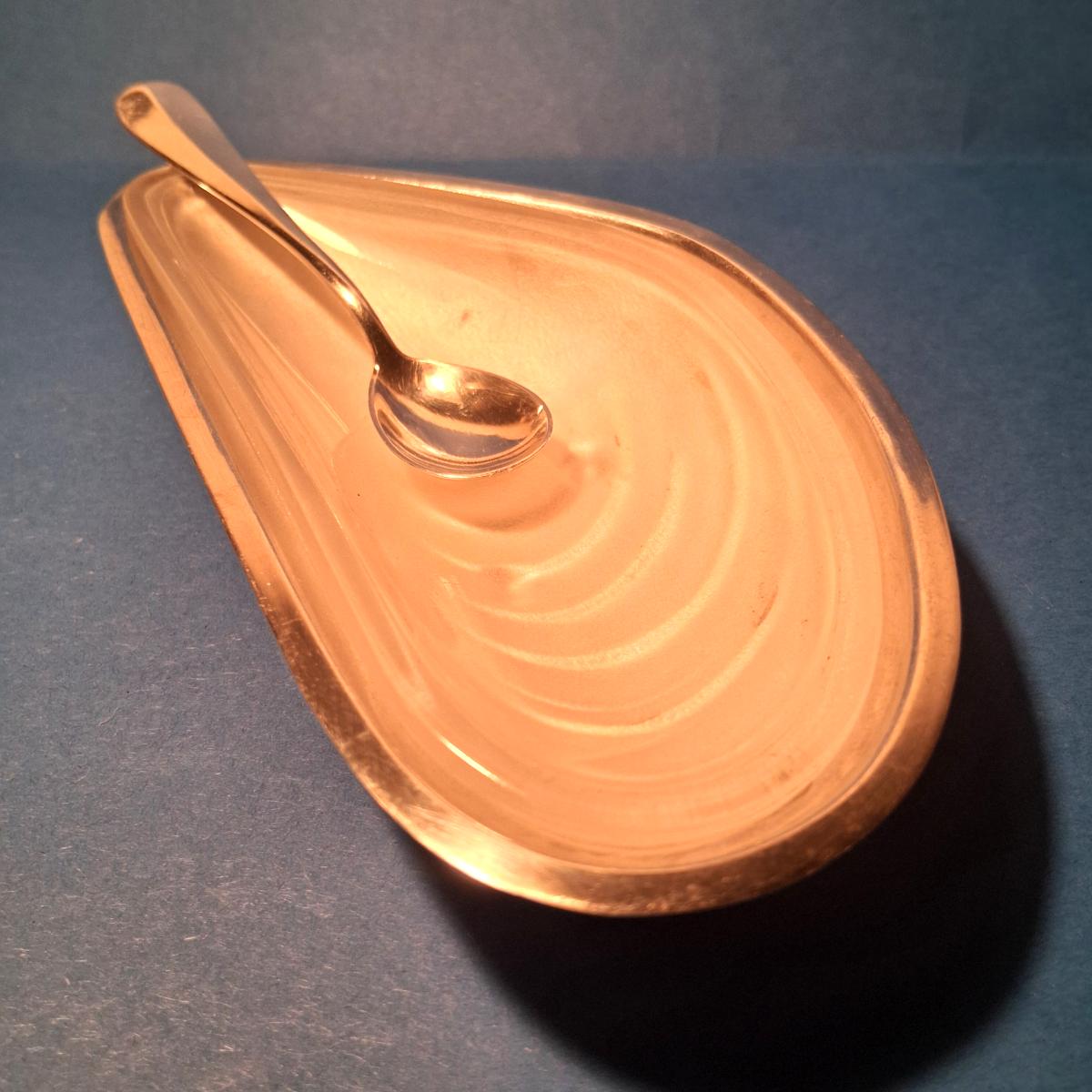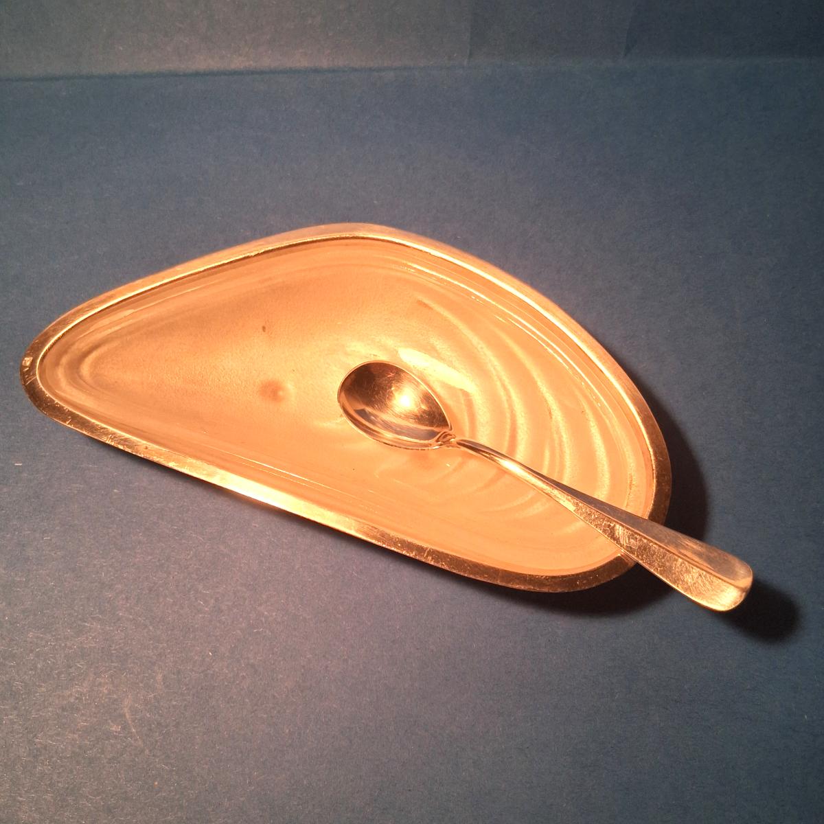 Charmant petit saucier en métal argenté accompagner de son fond en verre dépoli d'un demi centimètre d'épaisseur.