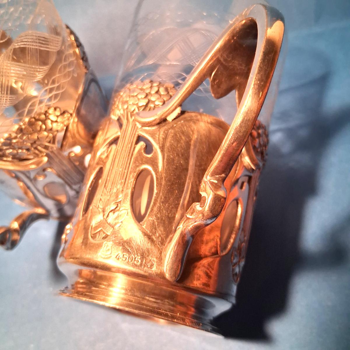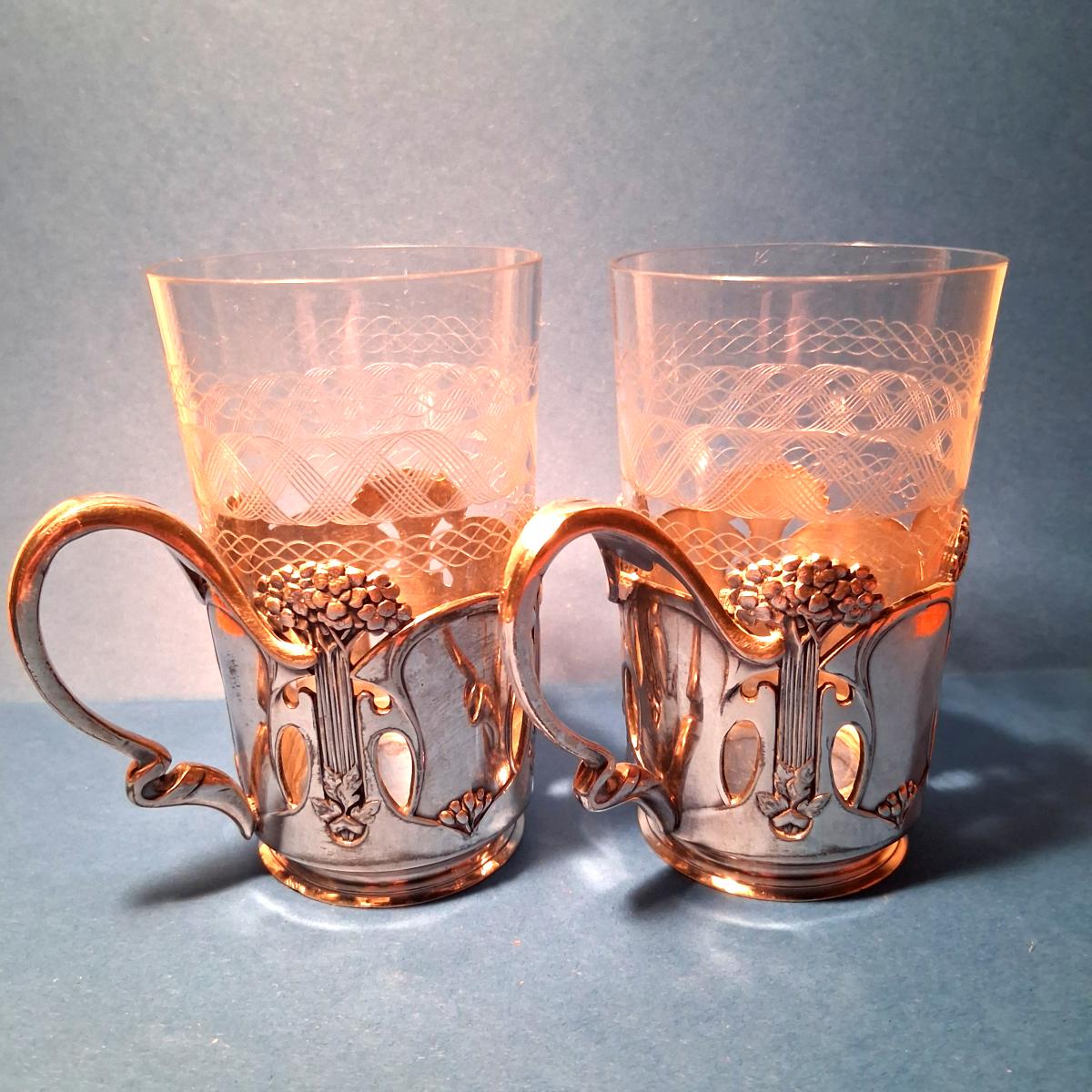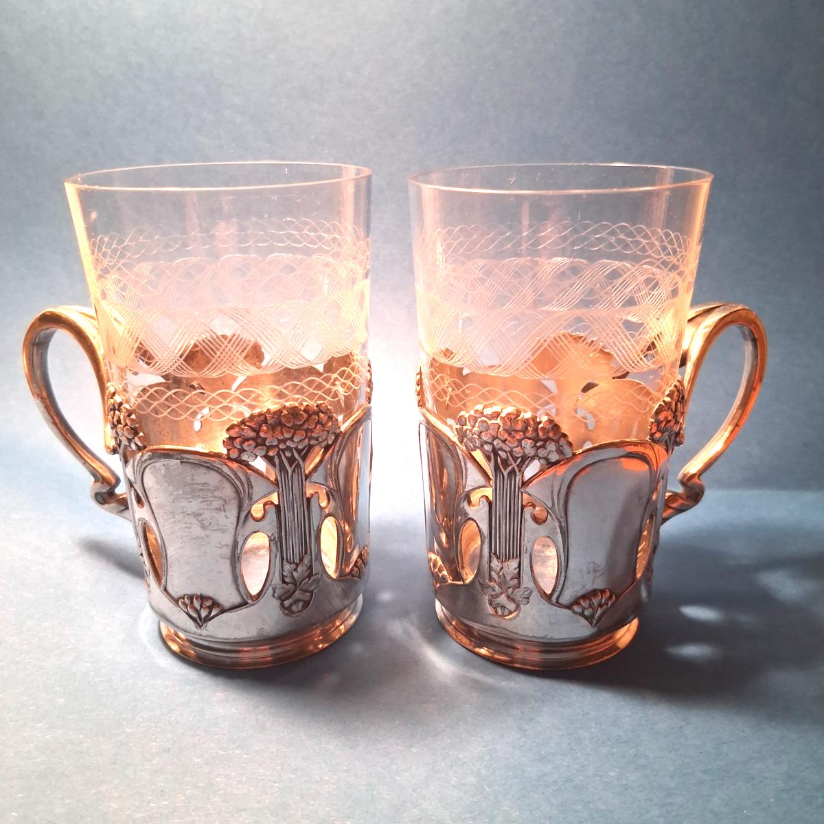 Superbes supports à thé en métal argenté d'époque art nouveau de l'orfèvrerie Gallia Christofle.